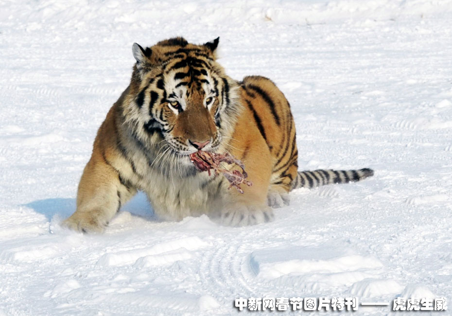1月13日,黑龍江東北虎林園,老虎在雪地中嬉戲追逐。(王少華 張書儉 攝) 圖片來源:中國新聞網