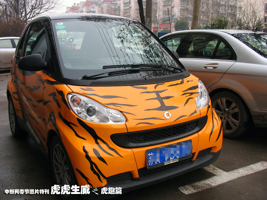 臨近虎年春節,南京街頭不斷增多的虎元素增添了濃濃的年味,紅山路上的一位車主將愛車裝扮成了可愛又有趣的老虎模樣。中新社發 王路憲 攝