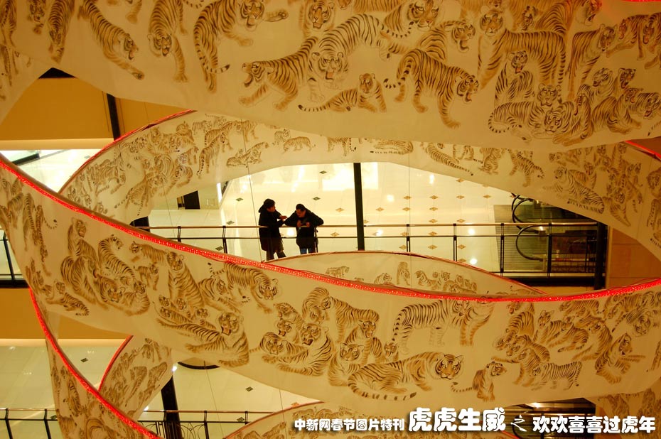2月3日,一幅長200米的“千虎畫卷”亮相上海市解放西路梅龍鎮廣場,喜迎農歷虎年和上海世博會。這幅作品由專長畫虎的農民畫家肖彥卿歷時3個多月時間手繪2010只老虎而成,畫卷展示結束后將捐獻給2010年上海世博會公眾參與館。中新社發 許康平 攝