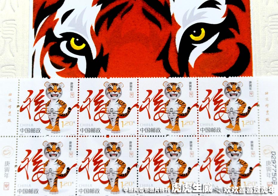 1月4日,北京朝陽區水碓子郵局,工作人員清點剛剛送到的《庚寅年》特種郵票。1月5日,中國郵政將發行《庚寅年》特種郵票,該郵票為1套1枚,面值1.20元。中新社發 遠舟 攝