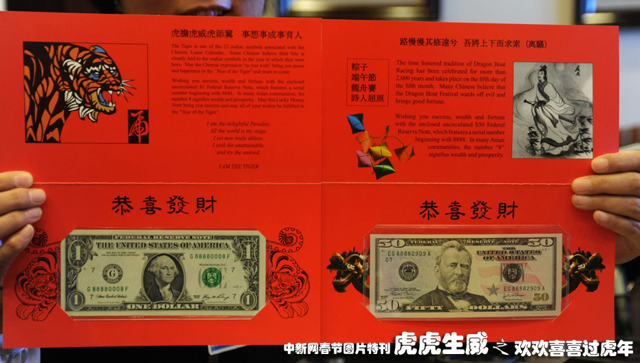 2009年12月1日,美國財政部造幣和印鈔局宣布,將限量發(fā)售中國虎年版“吉利錢”,向美國華裔社會送上新年祝福。中新社發(fā) 李靜 攝