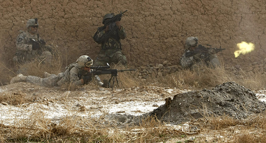 以美國為主的北約與阿富汗盟軍對阿南部城市馬爾賈的清剿活動14日進入了第二天。隨著巷戰展開,交火愈加頻繁和激烈。圖片來源:中國新聞網