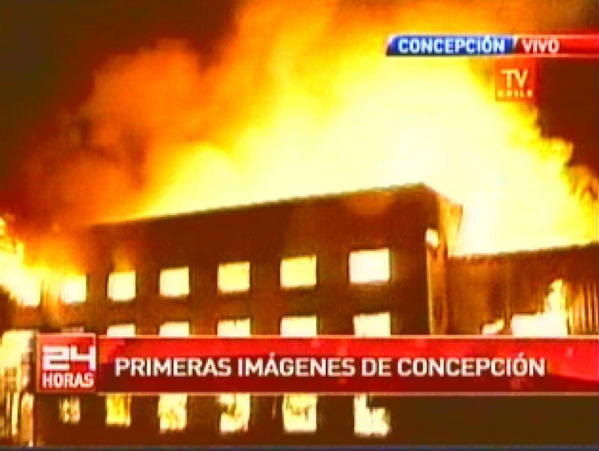 美國地震勘測局報告稱,智利康塞普西翁省附近當地時間27日凌晨發生里氏8.8級強烈地震,首都圣地亞哥有明顯震感。智利總統巴切萊特已宣布國家進入“災難狀態”。目前強烈地震造成的死亡人數已經升至78人。視頻截圖顯示在智利康塞普西翁,地震破壞嚴重,火光沖天。