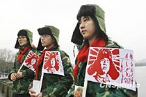 十一屆全國人大三次會議3月5日在北京開幕,各民族人大女代表的服飾靚麗多彩,在天安門廣場前大展英姿。 中新社記者 賈國榮 攝