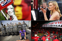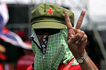 3月13日起,泰國“紅衫軍”陸續從泰國北部、東北部等外府進入曼谷市,在集會主會場搭設演講舞臺和帳篷,拉開大規模示威序幕。圖片來源:中國新聞網
