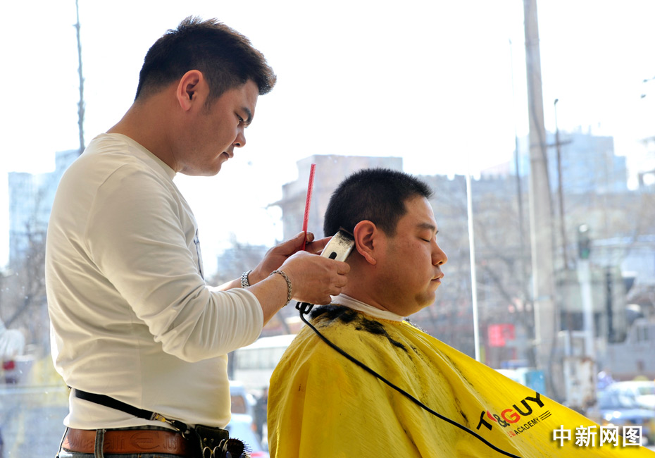 3月17日,北京市民在一家理發店理發。中新網記者 金碩 攝