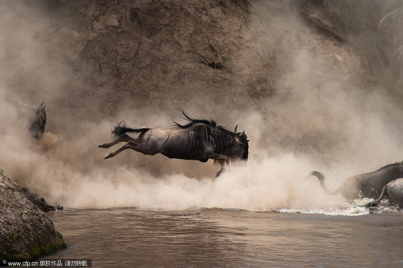 3月17日消息,捷克野生動物攝影師瓦拉夫·希爾哈(Vaclav Silha)在肯尼亞馬賽瑪拉(Masai Mara)國家保護區拍到了罕見的牛羚大遷移場面。上百萬牛羚集體穿越馬拉河,同時為了防止被水中的鱷魚咬到及逃避岸邊叢林里的老虎,牛羚群制造出巨大的聲響并急沖到對岸。barcroftmedia/CFP
