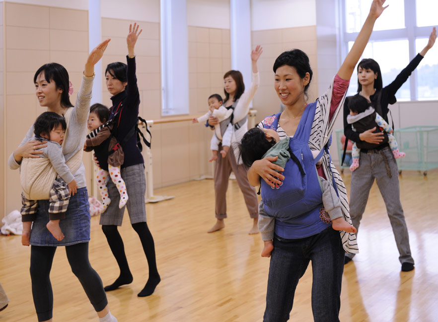 3月24日,在日本橫濱市的一堂母嬰桑巴課上,媽媽們帶著自己的寶寶一起參加舞蹈訓(xùn)練。 圖片來源:中國新聞網(wǎng)