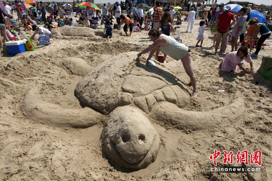 4月5日,以色列國家公園和自然保護區管理局在北城鎮Beit Yanai舉行了一年一度的沙雕大賽。世界眾多國家的沙雕愛好者前來參賽。圖片來源:中國新聞網