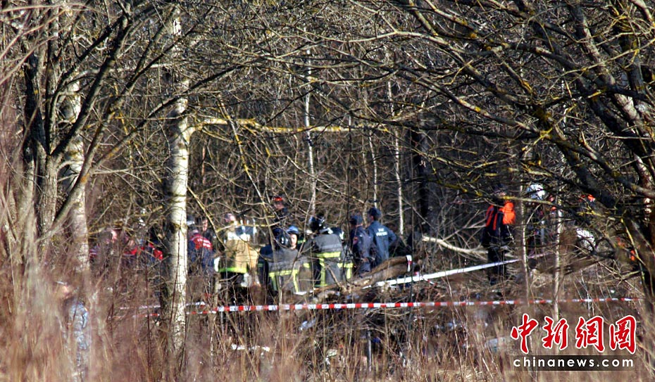 4月11日,波蘭總統卡欽斯基專機在俄羅斯斯摩棱斯克軍用機場墜毀地點附近的道路開通,但是警戒線核心區仍然關閉。俄波調查人員正在現場工作。圖片來源:中國新聞網