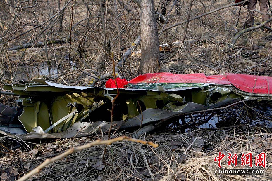 4月11日,波蘭總統卡欽斯基專機在俄羅斯斯摩棱斯克軍用機場墜毀地點附近的道路開通,但是警戒線核心區仍然關閉。俄波調查人員正在現場工作。圖片來源:中國新聞網