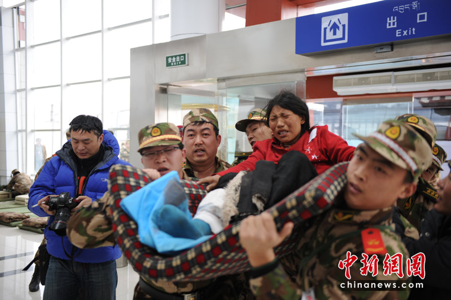 4月15日,玉樹地震傷員正源源不斷的從玉樹機場乘飛機,被運往成都等地救治。 中新社/中新網記者 符永康 攝