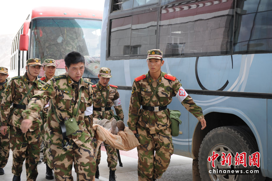4月15日,玉樹地震傷員正源源不斷的從玉樹機(jī)場(chǎng)乘飛機(jī),被運(yùn)往成都等地救治。 中新社/中新網(wǎng)記者 符永康 攝