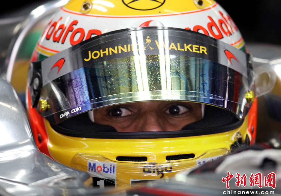 4月16日,2010國際汽聯(lián)F1世界錦標賽上海站在上海國際賽車場開始車手第一、第二次練習賽。圖為代表邁凱輪車隊出戰(zhàn)的英國車手漢密爾頓跑出當日最好成績。中新社記者 任晨鳴 攝