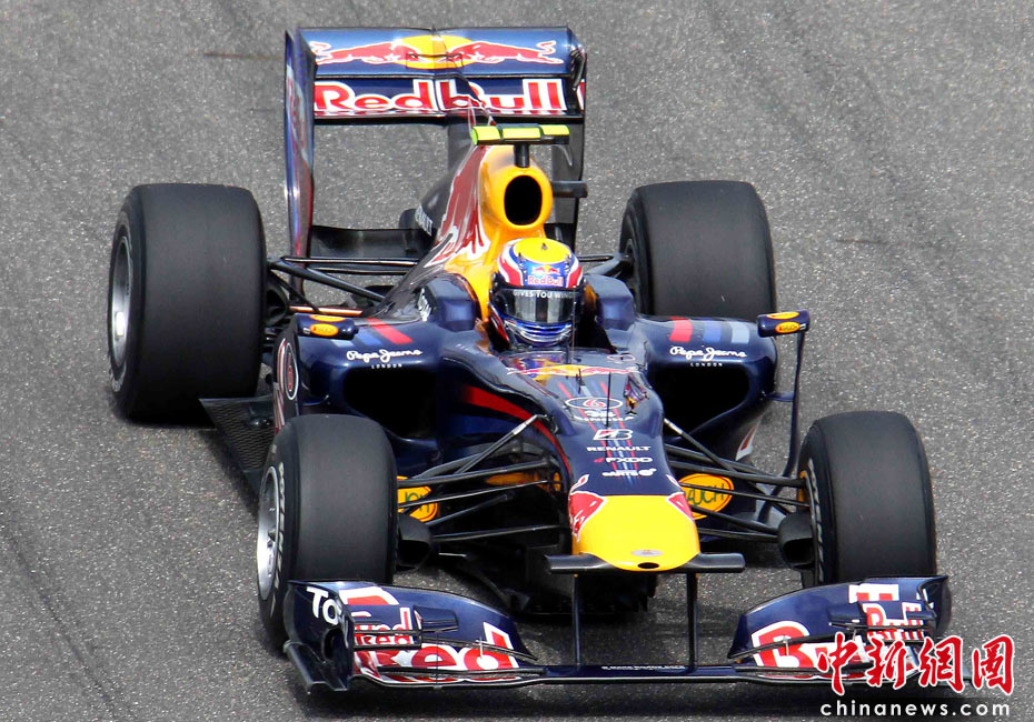 4月17日下午,2010國際汽聯F1世界錦標賽上海站在上海國際賽車場舉行排位賽,代表紅牛車隊出戰的德國車手維特爾(右)獲得桿位,隊友、澳大利亞車手韋伯獲得第二名,法拉利車隊的西班牙車手阿隆索獲得第三名。中新社記者 任晨鳴 攝