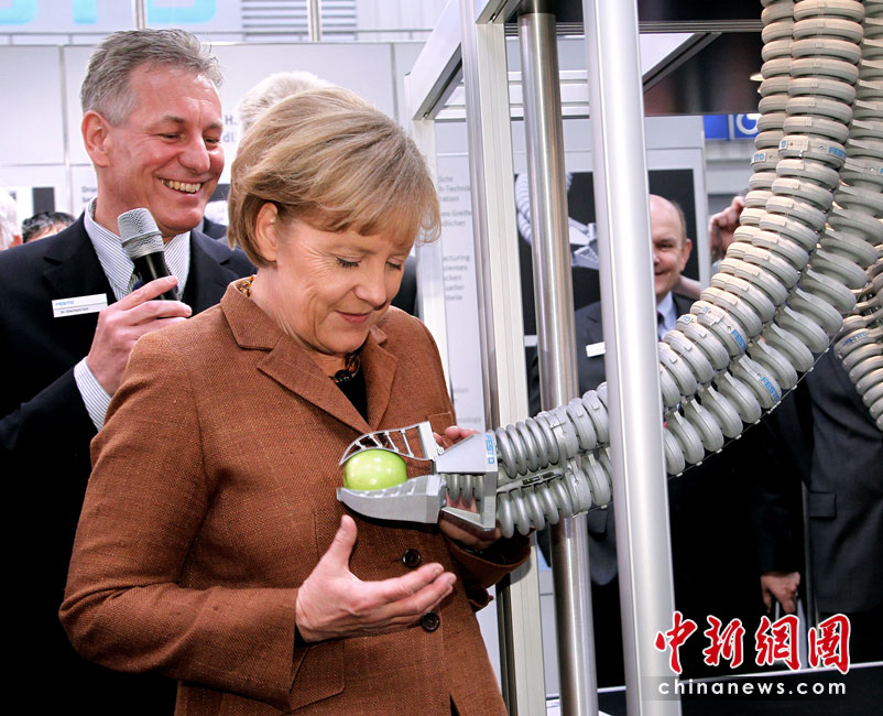 4月19日,德國漢諾威,德國總理默克爾出席漢諾威工業博覽會開幕式。