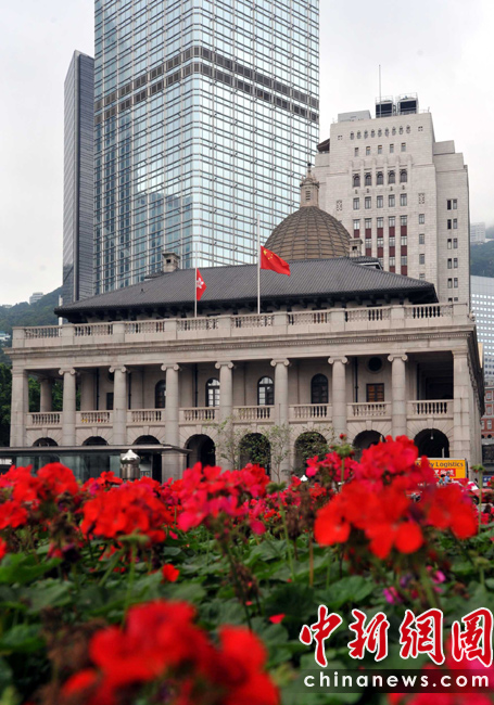 4月21日,全國哀悼青海玉樹地震遇難同胞,香港特別行政區所有政府機構均下半旗致哀。圖為香港特別行政區立法會大樓下半旗向地震遇難同胞哀悼。中新社發 鄧慶樂 攝