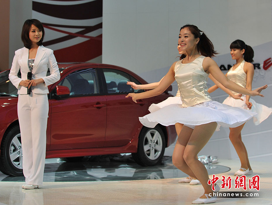 “第十一屆北京國際車展”場內車模爭奇斗艷,另類模特也值得人們關注。中新網記者 金碩 攝
