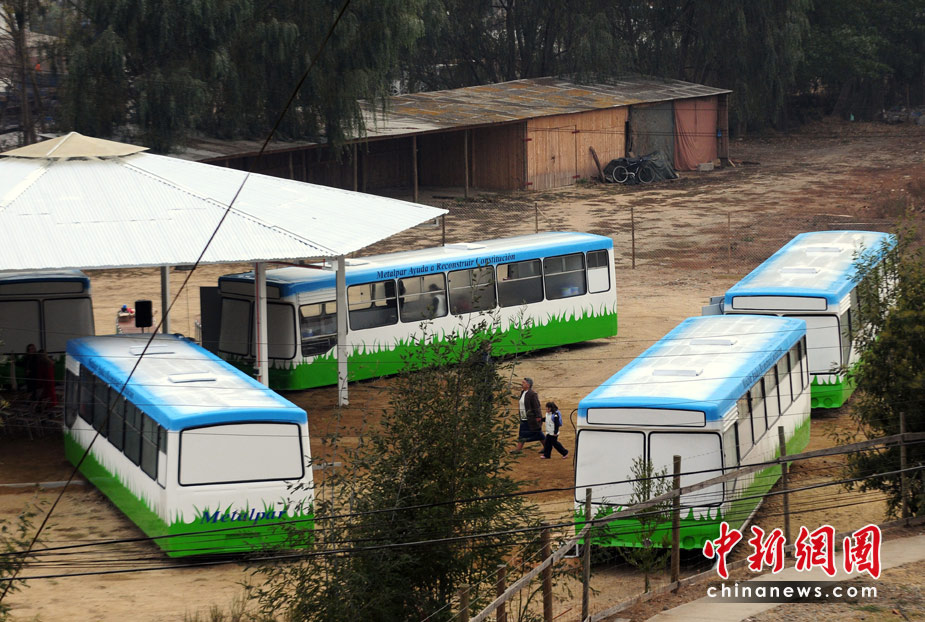 4月26日,今年2月遭受8.8級強烈地震的智利康塞普西翁市,兒童們在“巴士學校”里上課。