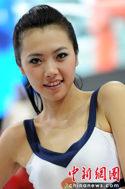 “第十一屆北京國際車展”是名車新品搶先亮相的舞臺,也成了車模們爭奇斗艷的場所,參觀者在車展中可以享受兩道視覺大餐。中新網記者 金碩 攝