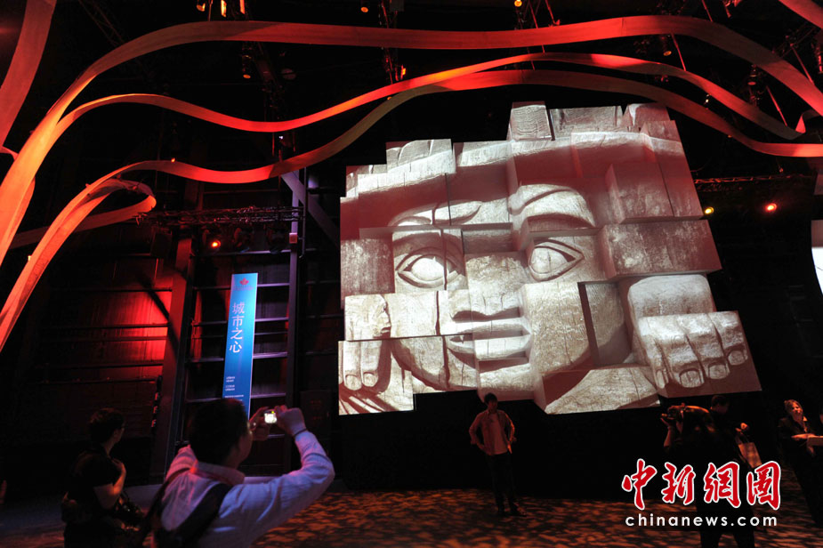 5月1日,上海世博園內的加拿大館開館,館內展出的《城市之心》、《城市印象》《神奇之水》等創意作品給觀眾留下深刻印象。中新社發 陳文 攝
