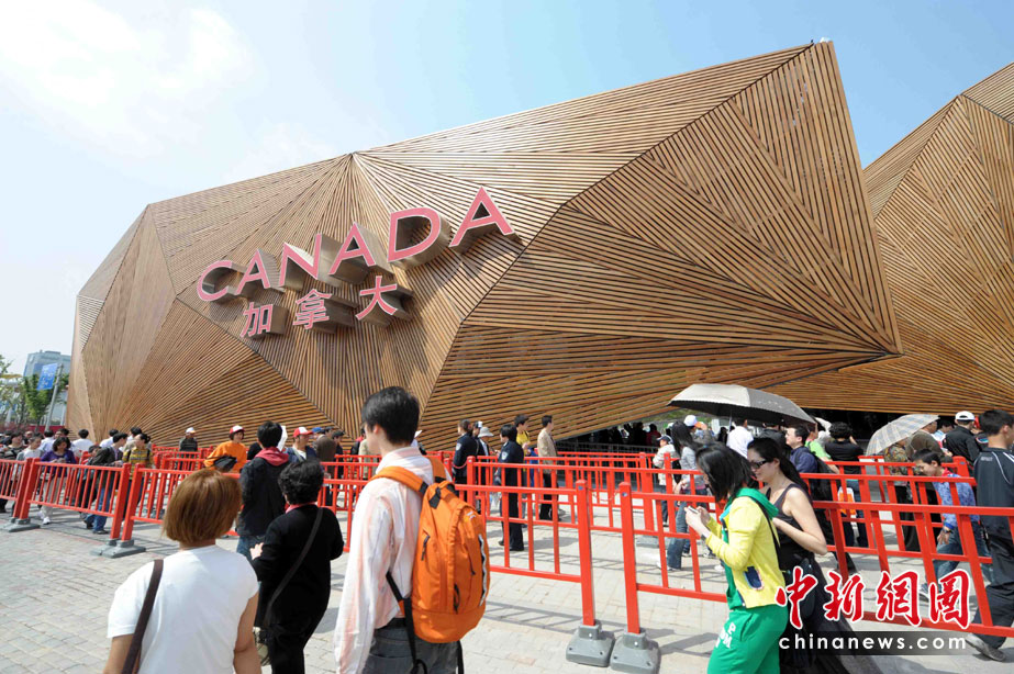 5月1日,上海世博會加拿大館開館,數以萬計的海內外觀眾陸續步入加拿大館參觀。中新社發 陳文 攝