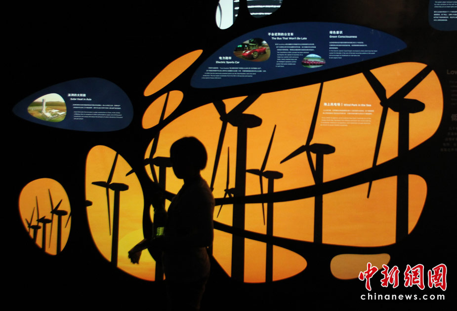 5月3日,觀眾在上海世博會“城市地球館”學習低碳知識。中新社發 蘇丹 攝