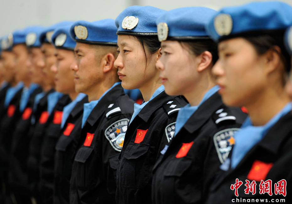 5月4日,中國第八支赴海地維和警察防暴隊全體隊員乘坐聯合國包機返回祖國。公安部副部長孟宏偉、政治部主任蔡安季前往機場迎接。 中新社發 劉震 攝