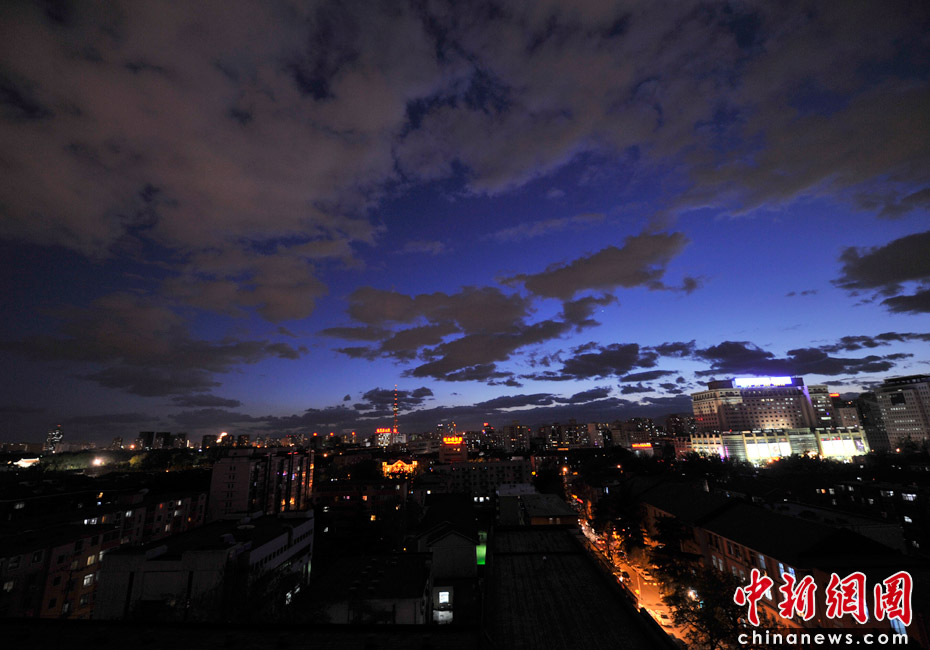 5月5日立夏,京城降雨今晨剛剛結(jié)束,霧氣伺機(jī)又起。傍晚時(shí)分,隨著四級北風(fēng)的到來,京城天氣逐漸轉(zhuǎn)晴,霧氣慢慢消散天空彤云密布夜色瑰麗。中新網(wǎng)記者 金碩 攝