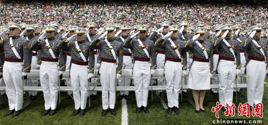 5月22日,美國紐約州北部哈德遜河西岸西點鎮的西點軍校舉行2010年度畢業典禮,美國總統奧巴馬出席典禮。本屆共有1002名學員獲得理學學士學位,并被授予陸軍少尉軍銜。圖片來源:中國新聞網