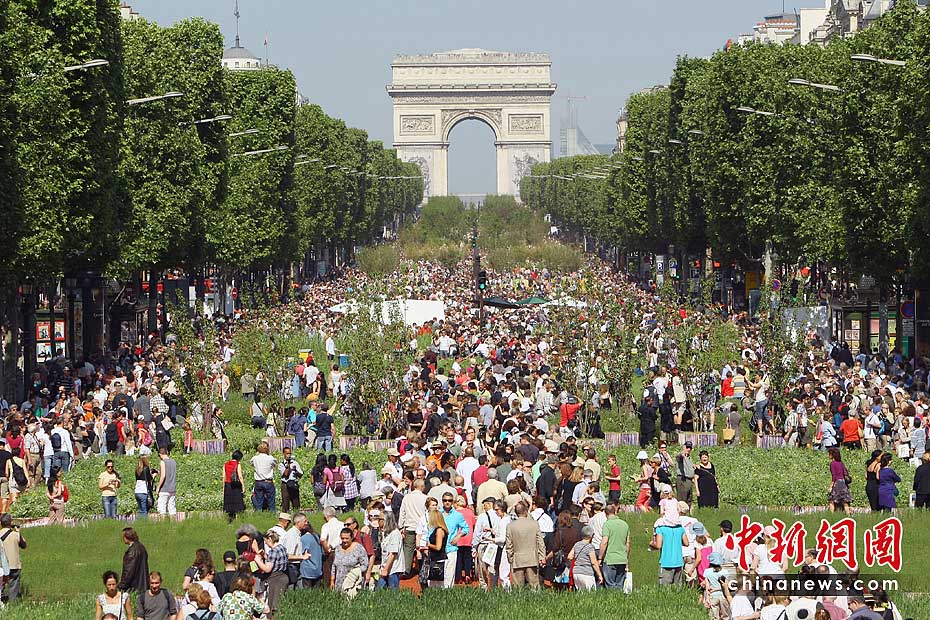 5月24日,法國總統薩科齊和妻子布呂尼參觀在法國巴黎舉行的“自然首都”展。該項展覽是由街頭藝術家加德·魏爾聯手法國“青年農民協會”和林業協會共同發起的的,將百余種農作物、樹木和動物“齊聚”法國首都巴黎的香榭麗舍大街,令這條“香街”變身“綠色的自然世界”。圖片來源:中國新聞網