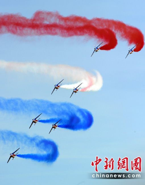 5月25日,法國(guó)巡邏兵特技飛行表演隊(duì)在普羅旺斯地區(qū)進(jìn)行驚險(xiǎn)的飛行表演。