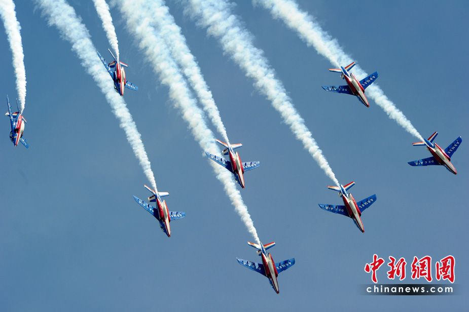 5月25日,法國巡邏兵特技飛行表演隊在普羅旺斯地區進行驚險的飛行表演。