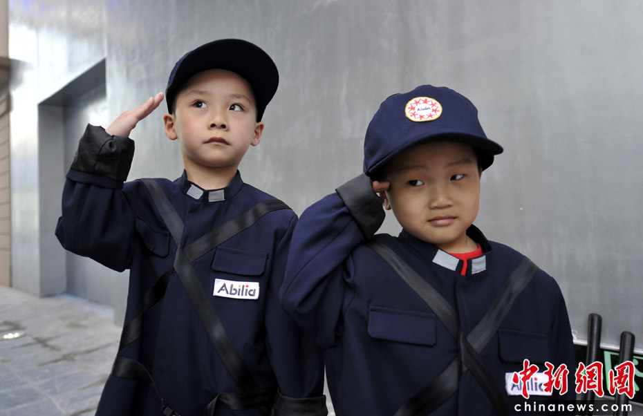 圖為孩子體驗做警察。 中新網記者 王紅綱 攝