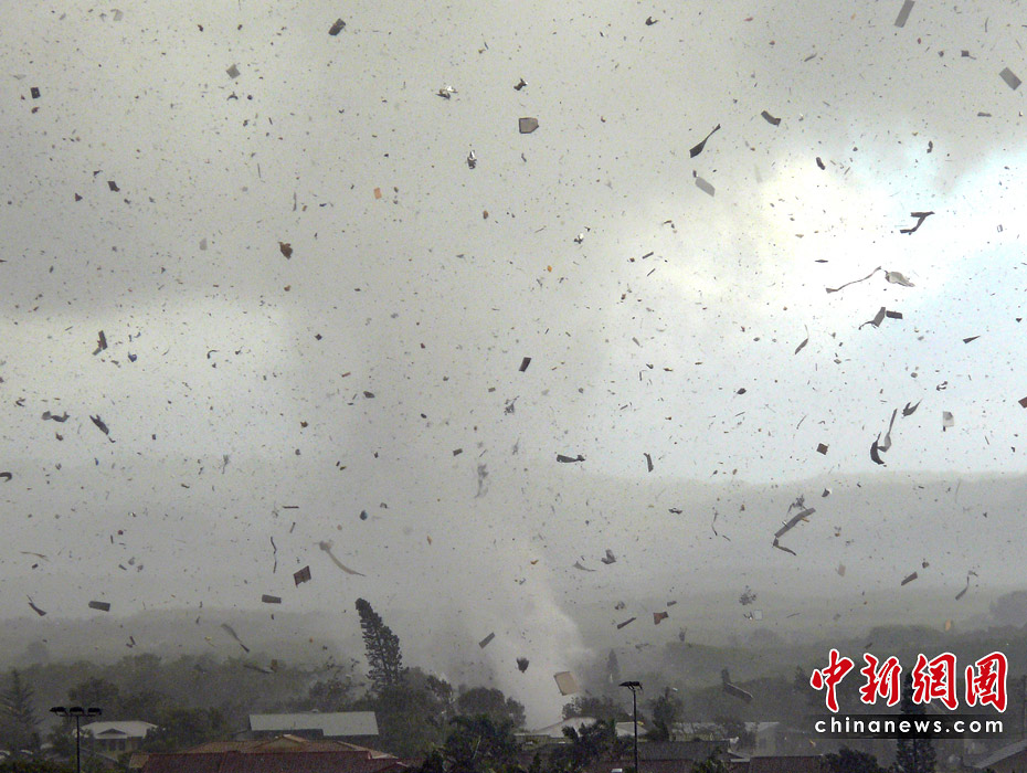 6月3日,澳大利亞新南威爾士州海濱城鎮(zhèn)倫諾克斯黑德遭到龍卷風(fēng)襲擊,大樹(shù)被連根拔起,屋頂被掀翻,重型拖車(chē)也被拋到半空中。數(shù)千所民居停電。一共有12所房屋在這場(chǎng)龍卷風(fēng)中被摧毀,6人受傷,傷勢(shì)不重。所幸沒(méi)有人員死亡的報(bào)告。圖片來(lái)源:中國(guó)新聞網(wǎng)