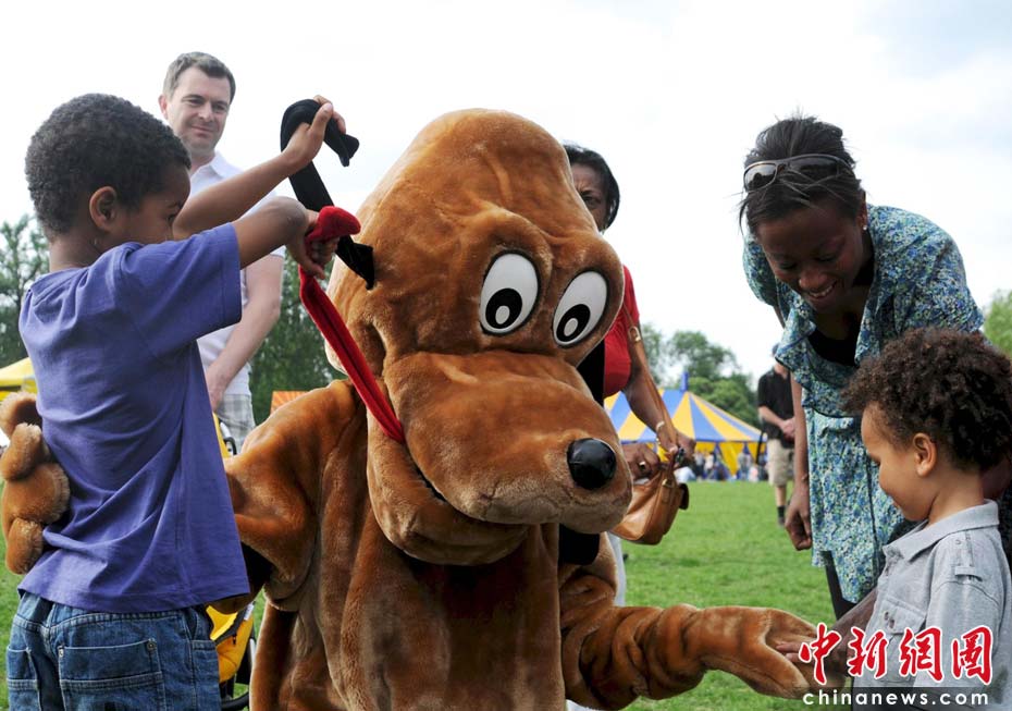 當(dāng)?shù)貢r(shí)間2010年6月6日,英國倫敦舉行卡姆登綠色市集(Camden Green Fair),這是英國倫敦每年環(huán)保領(lǐng)域的“重頭戲”。本屆市集的主旨是要喚起大眾對(duì)環(huán)境問題的關(guān)注,選擇更加可持續(xù)發(fā)展的生活方式。據(jù)活動(dòng)主辦方預(yù)計(jì),本屆市集將吸引來自英國各地和世界各國的2萬多人參加。圖為由工作人員扮成的卡通狗總會(huì)引來許多孩子。Fiona/攝 Fiona 馬小剛/文