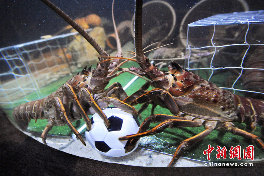 當(dāng)?shù)貢r(shí)間6月15日,德國北部,水族館里的海洋生物爭搶填滿飼料的足球。