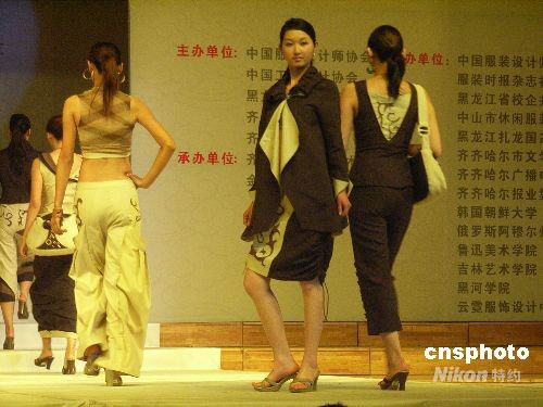2008年9月29日,“人.鶴.自然”第二屆中國國際亞麻服裝設(shè)計(jì)大賽決賽在齊齊哈爾大學(xué)舉行,來自國內(nèi)外37位設(shè)計(jì)師的作品參加決賽。大賽旨在選拔、培養(yǎng)優(yōu)秀的亞麻服裝專業(yè)設(shè)計(jì)人才,提升消費(fèi)者對(duì)亞麻服裝的審美與品牌意識(shí)。大賽主題為人.鶴.自然,以綠色設(shè)計(jì)為理念,倡導(dǎo)自然、健康、安全、舒適的生活方式。中新社發(fā) 王云龍 攝