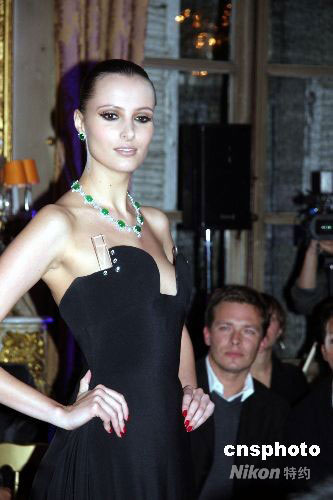 以“美麗永恒”為主題的中華風尚珠寶藝術展十月二日晚在法國巴黎舉行。圖為模特兒在展示中國珠寶作品。中新社發 吳衛中 攝