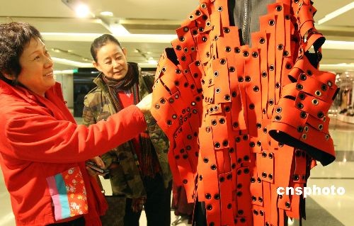 11月8日,“從哪里來——時(shí)裝藝術(shù)國(guó)際展/From Where-- Fashion Art 2008 International在北京國(guó)貿(mào)商城開幕,本次展覽共邀請(qǐng)10個(gè)國(guó)家和地區(qū)88位藝術(shù)家的88件作品,他們分別來自美國(guó)、法國(guó)、德國(guó)、英國(guó)、韓國(guó)、中國(guó)以及中國(guó)香港地區(qū),受邀參加本次展覽的外國(guó)藝術(shù)家有Louda larrain、Johanna braitbart、金暎仁、琴基淑、李知賢等。中新社發(fā) 錢興強(qiáng) 攝