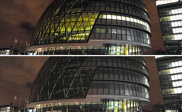 英國倫敦:3月28日,英國倫敦市政廳熄燈時(shí)和重新亮燈后的對比情況。