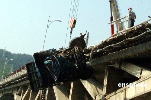 十一月十四日,營(yíng)救人員啟動(dòng)大型吊車正在將一輛墜入閩江的車輛打撈上岸。當(dāng)天凌晨四時(shí)許,一輛從福州建新鎮(zhèn)開(kāi)往鼓樓區(qū)方向的微型小貨車,行駛至洪山橋路面時(shí)與另一輛從相反方向駛來(lái)的運(yùn)沙車相撞后墜入閩江中,至少造成兩名司機(jī)死亡。福州市公安、消防等部門緊急出動(dòng),組織營(yíng)救,啟動(dòng)大型吊車先后將兩輛墜江車輛和一名遇難司機(jī)尸體打撈上岸。 中新社發(fā) 劉可耕 攝