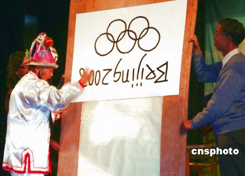 11月29日,遼寧沈陽鄭錫平在八一劇場北方老齡藝術團5周年年慶會上,用自制的自來水毛筆表演“倒著一筆”分別寫完“2008北京奧運”、“五環”、“迎奧運”等,得到與會人員的贊嘆。