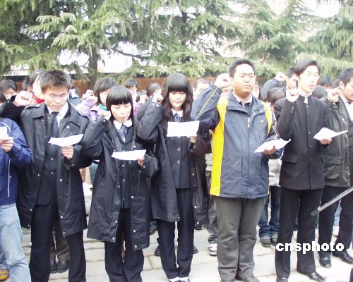 侵華日軍南京大屠殺遇難同胞紀念館新館擴建即將竣工開放,12月9日,一批志愿者在該館悼念小廣場宣誓上崗。該館自一個月前向社會發布招募新館志愿者公告以來,南京市民積極響應,截止昨天,已有1100多人報名。今天宣誓上崗的志愿者中年齡最大的75歲,最小的僅8歲。中新社發 王國安 攝