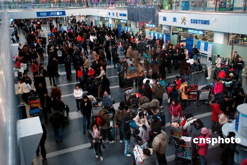 1月24日,2008年全國春運已全面啟動,公路、民航客流穩(wěn)步上升,鐵路客流有所回落。圖為北京首都機場2號航站樓等待航班的旅客。中新社發(fā) 楊慧峰 攝