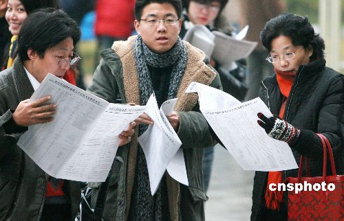 1月26日,2008年蘇州春季人才交流大會暨畢業生雙選會開場。據了解,本次“雙選會”有近500家用人單位進場招聘,為求職者提供12000多個職位。其中事業單位需求崗位1300余個、企業單位需求崗位10900多個,博士、碩士生及本科以上學歷占需求總量的53%以上。據主辦方稱,當日進場人數可逾6萬。中新社發 蘇秀 攝