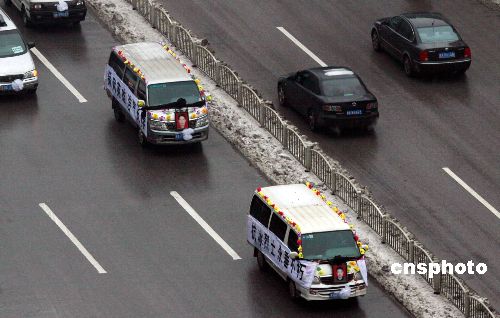 圖:長(zhǎng)沙市民送別在雪災(zāi)中犧牲的三位烈士