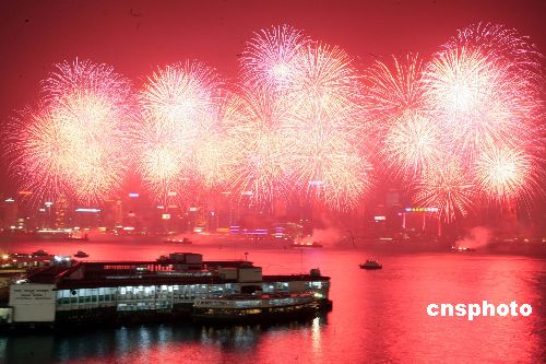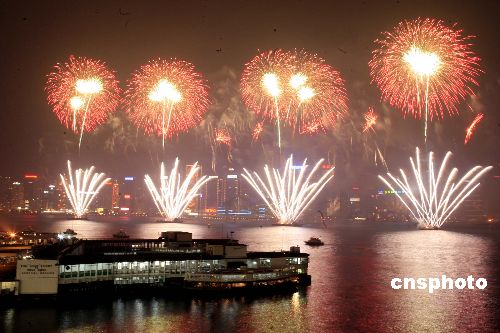 二月八日,農(nóng)歷新年初二,香港維港上空賀歲煙花絢麗璀璨。據(jù)介紹,主辦單位動(dòng)用四艘躉船發(fā)放煙花,制造出長(zhǎng)一千米、高三百米的“煙花屏幕”,是歷年來(lái)最大型的煙花匯演。煙花匯演上演十幕,歷時(shí)二十三分鐘,其中“北京”字樣的煙花更是頭一次在香港發(fā)放。警方估計(jì)有四十萬(wàn)人在維港兩岸觀賞。中新社發(fā) 王麗南 攝