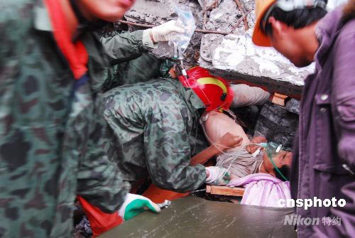 5月14日凌晨,地震災區四川綿竹東汽中學救援現場。中新社發 徐永剛 攝