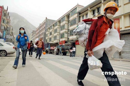 汶川地震災區縣城自受災以來大小店鋪關門,受災民眾情緒穩定、社會秩序良好。